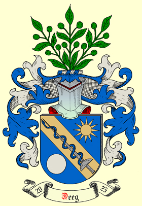 Auf Antrag von Herrn "Dr. Lothar Ernst Deeg" und seine Tochter "Laura Deeg", ist am 17. September 2025 nebenstehendes Familienwappen für die aus Deutschland stammende Familie, eingetragen und registriert worden.