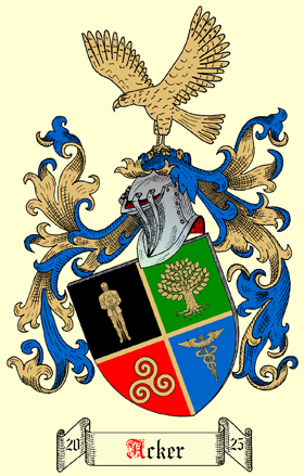 Auf Antrag von Herrn "Marcus Acker", ist am 26. September 2025 nebenstehendes Familienwappen für die aus Ludwigshafen am Rhein - Deutschland stammende Familie, eingetragen und registriert worden.