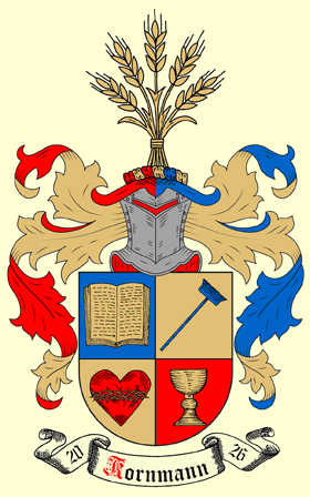 Auf Antrag von Herrn "Diplom Theologe Matthias Klaus Bernhard Kornmann", ist am 24. Februar 2026 nebenstehendes Familienwappen für die aus Deutschland stammende Familie, eingetragen und registriert worden.